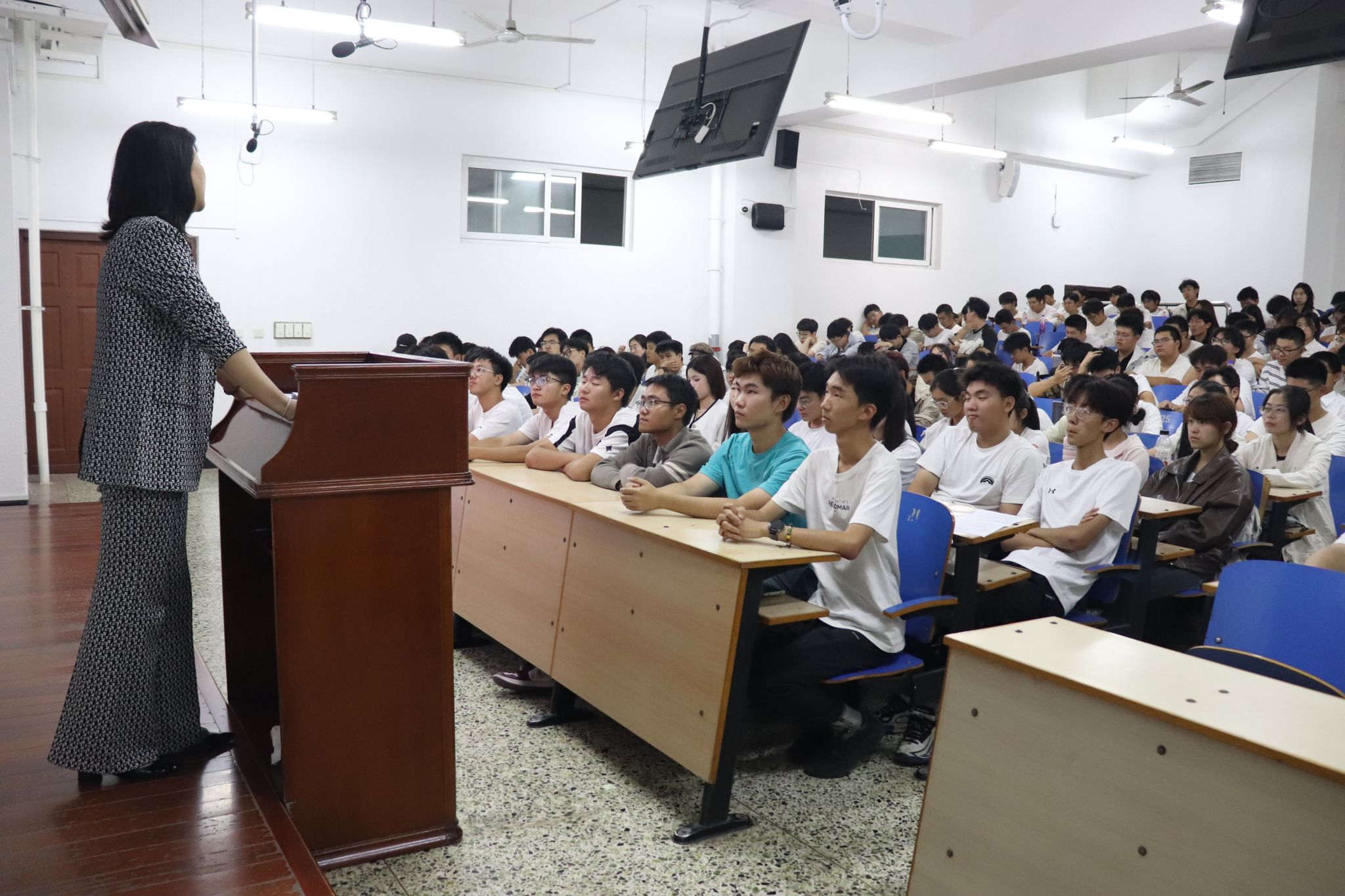 王丽宏副书记以“厚植红心筑根基 笃定信念跟党走”为主题,从中国共产党百年奋斗历程切入,结合新时代党和国家事业发展成就,深刻阐释了中国共产党的性质、宗旨与使命,帮助新生明晰“为何入党、为党做什么”的价值追求。同时,她向新生系统介绍了从“申请入党”到“预备党员的教育、考察和转正”等党员发展全流程,逐一梳理各个环节的具体要求和注意事项,为新生积极向党组织靠拢提供清晰指引。她鼓励新生明确奋斗目标,坚定理想信念,积极向党组织靠拢,在实践锻炼中完成使命担当的传承。