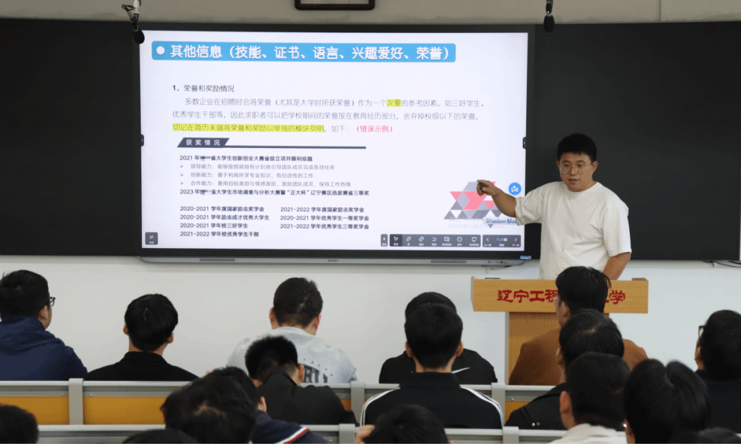 会议具体围绕就业能力提升与毕业阶段学生管理两大核心议题展开。王瑞斌老师详细介绍了毕业生生源信息的确认、应届生身份定义、网签三方协议与纸质三方协议签订流程等注意事项,尤其是要注意防范就业陷阱。并详细讲解了简历撰写的规范要求,强调需重点呈现教育背景、获奖经历及专业技能,确保内容准确、精炼。特别对面试礼仪做出明确指导,要求毕业生注重职业着装,保持仪表整洁,时刻展现良好的职业风貌。同时针对毕业生的特点,王瑞斌老师提出进一步强化学生管理工作的要求。明确在校生须严格遵守日常行为规范、教学秩序,自觉配合课堂及宿舍巡查工作。重点强调了宿舍安全管理规定,禁止私自校外住宿,督促学生保持居住环境整洁有序,切实保障人身与财产安全。