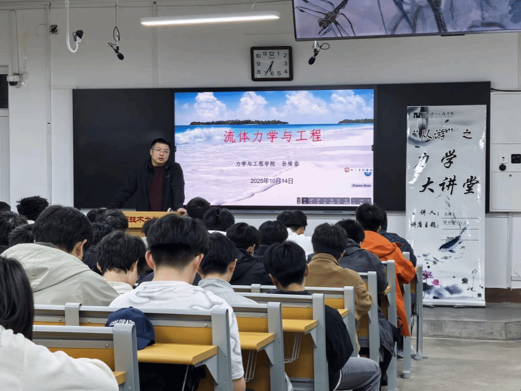 10月14日,力学与工程学院在新华楼201举办“从游”之力学大讲堂活动。孙维吉副院长以《流体力学与工程》为题进行主讲,全体大一同学参加。