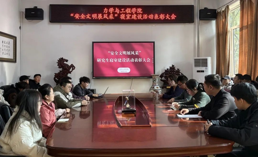 为涵养优良学风,营造积极向上、文明和谐、健康安全的寝室文化,充分发挥研究生寝室育人功能,帮助学生养成良好的学习和生活习惯,力学与工程学院于2024-2025学年春季学期开展“安全文明展风采”研究生寝室建设活动,并于近日举行研究生优秀文明寝室表彰大会。学院党委书记高薇、研究生辅导员黄轶铂及研究生班导师苗丰、涂钰滢出席活动,研究生各年级寝室长、学生代表共计40余人参加活动,会议由研究生辅导员黄轶铂主持。