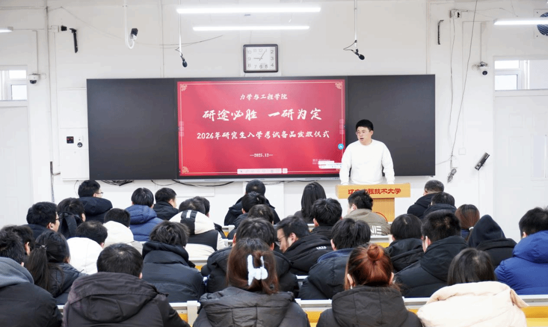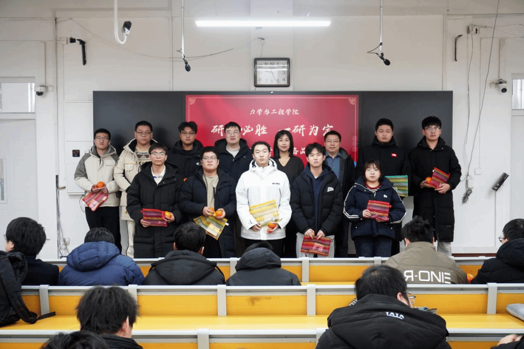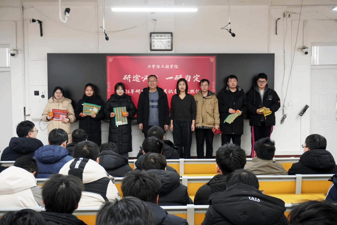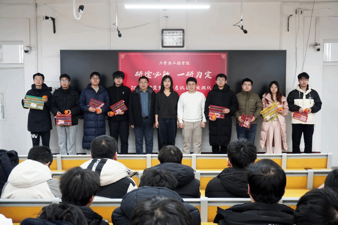 寒风料峭,暖意盈怀。12月10日力学学院“研途必胜 一研为定”暖心助考活动暨考研备品发放仪式在新华楼206温情启幕。学院院长肖晓春、党委副书记王丽宏、副院长孙维吉及各毕业班班导师给全体考研学子送上真挚慰问与暖心祝福。活动由学院学工部主任王瑞斌主持。