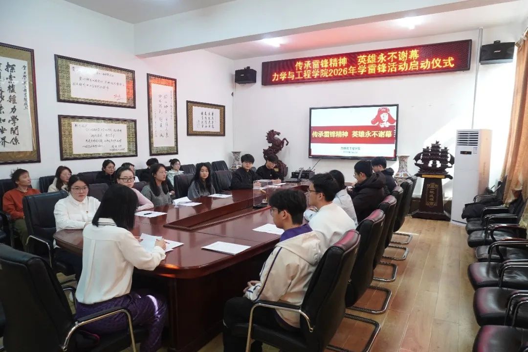 为弘扬新时代雷锋精神,引导广大同学积极投身志愿服务。3月2日,力学与工程学院2026年学雷锋活动启动仪式在建业楼会议室正式拉开帷幕。会上,学院团委书记解书华宣读了我院2026年学雷锋活动方案,提出活动要求,号召同学们共赴这场传承雷锋精神,践行点滴善举的文明之约。