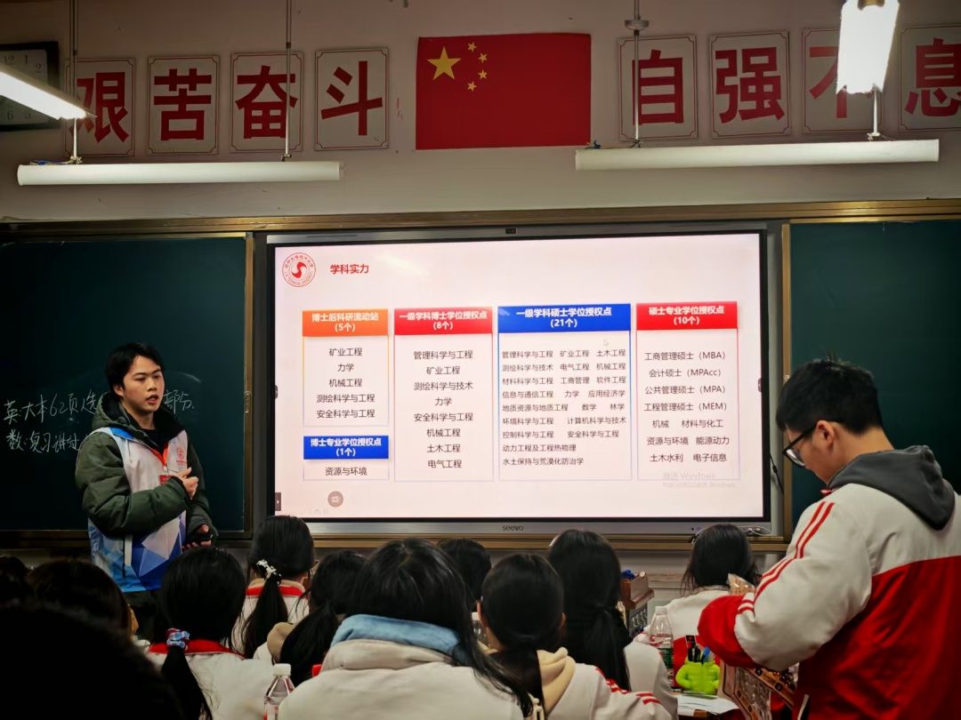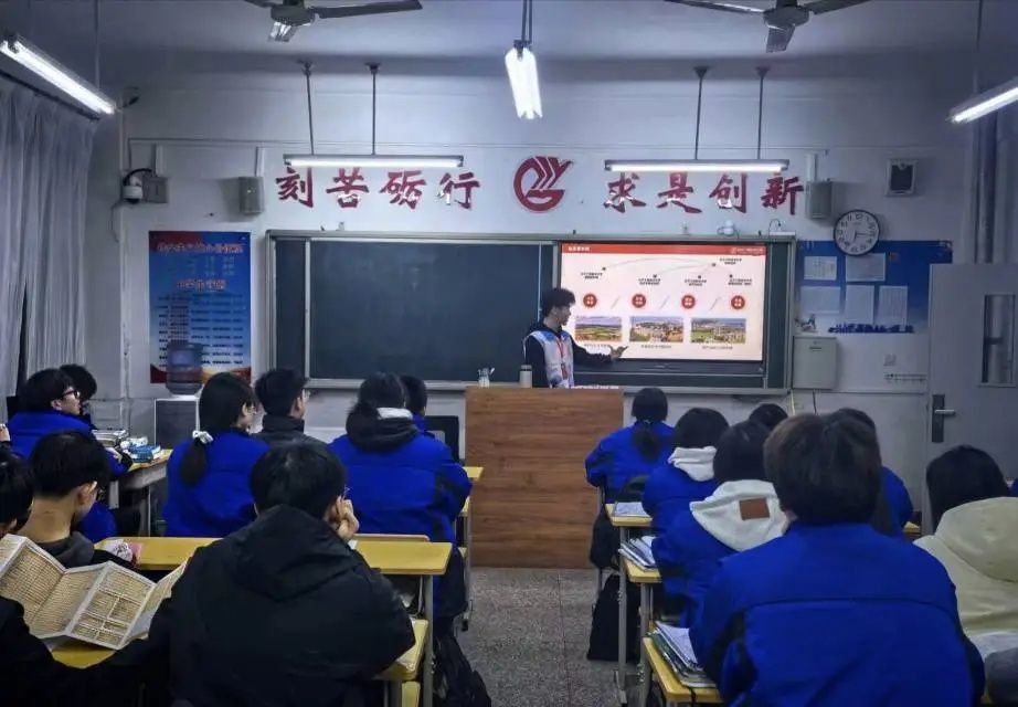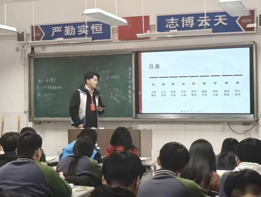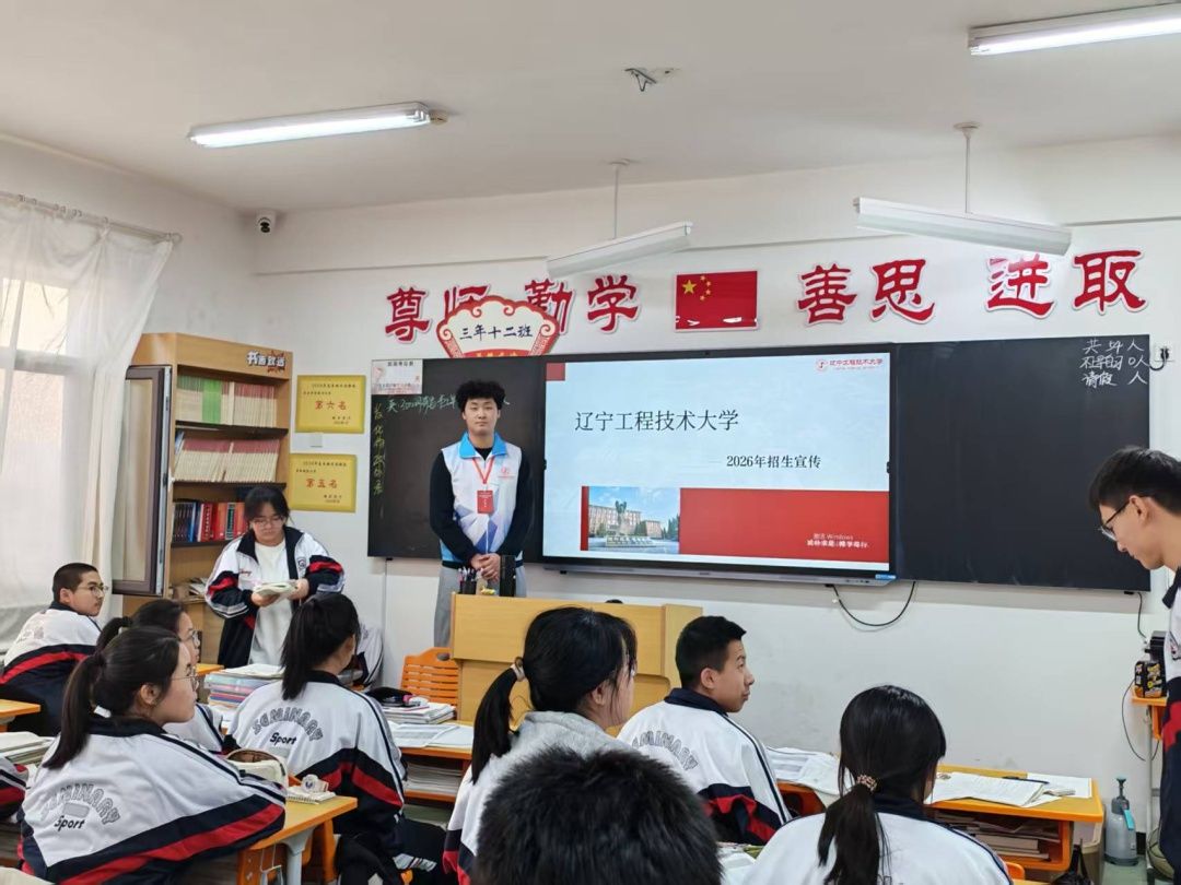 在寒假招生宣传实践中,青年力学人化身“招生代言人”回到高中母校宣讲。他们精心准备招生手册与课件,细致解读学校办学特色、专业优势、师资力量和人才培养成果;播放校园 Vlog、分享大学生活,展现辽工程的校园文化与学习氛围,并耐心解答高考备考、专业选择等疑问。从教室集中宣讲到一对一交流,同学们用真诚搭建起辽工程与高中母校的沟通桥梁,让更多优秀学子了解并向往辽工程,为学校招生工作注入青春动能。