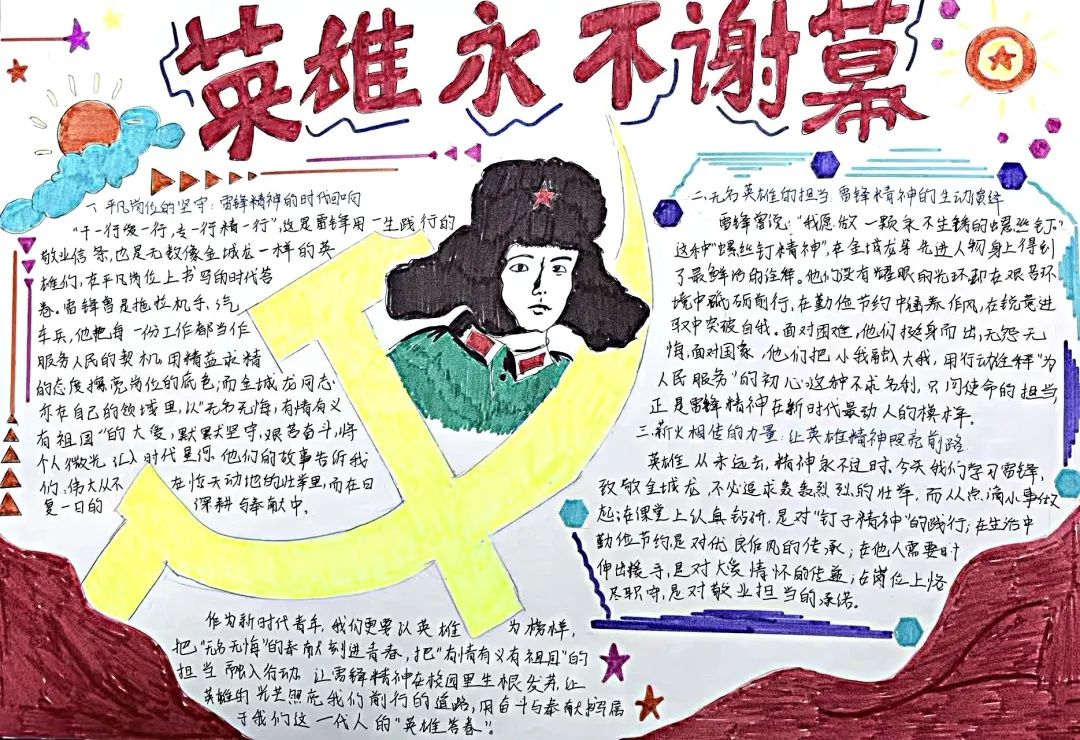 为大力弘扬雷锋精神,涵养新时代文明风尚,引导力学与工程学院青年学子坚定理想信念、强化责任担当,力学与工程学院开展学雷锋优秀手抄报征集活动。同学们以画笔传承精神,用设计诠释初心,创作了一批主题鲜明、富有感染力的优秀作品,传递出青年学子对雷锋精神的深刻理解和践行决心。