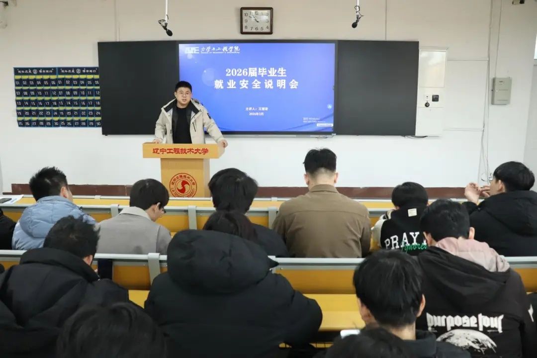 为进一步做好2026届毕业生就业服务工作,筑牢求职安全防线,2026年3月20日,力学与工程学院在新华楼202教室召开2026届毕业生就业推进会。学院党委副书记王丽宏、学工部主任王瑞斌出席会议,全体2026届毕业生参会,会议由王瑞斌主持。