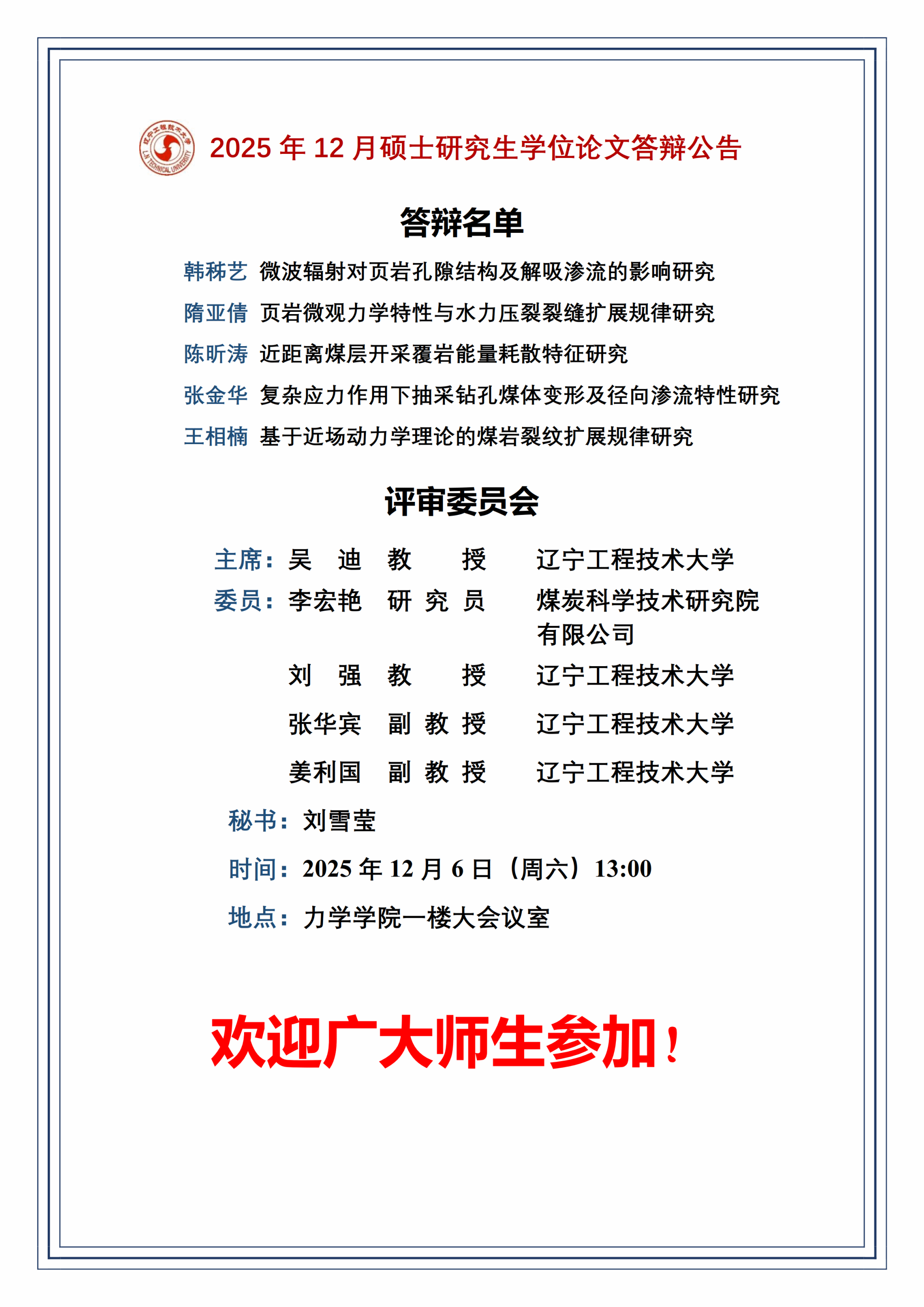 2025年12月硕士研究生学位论文答辩公告(1组)
