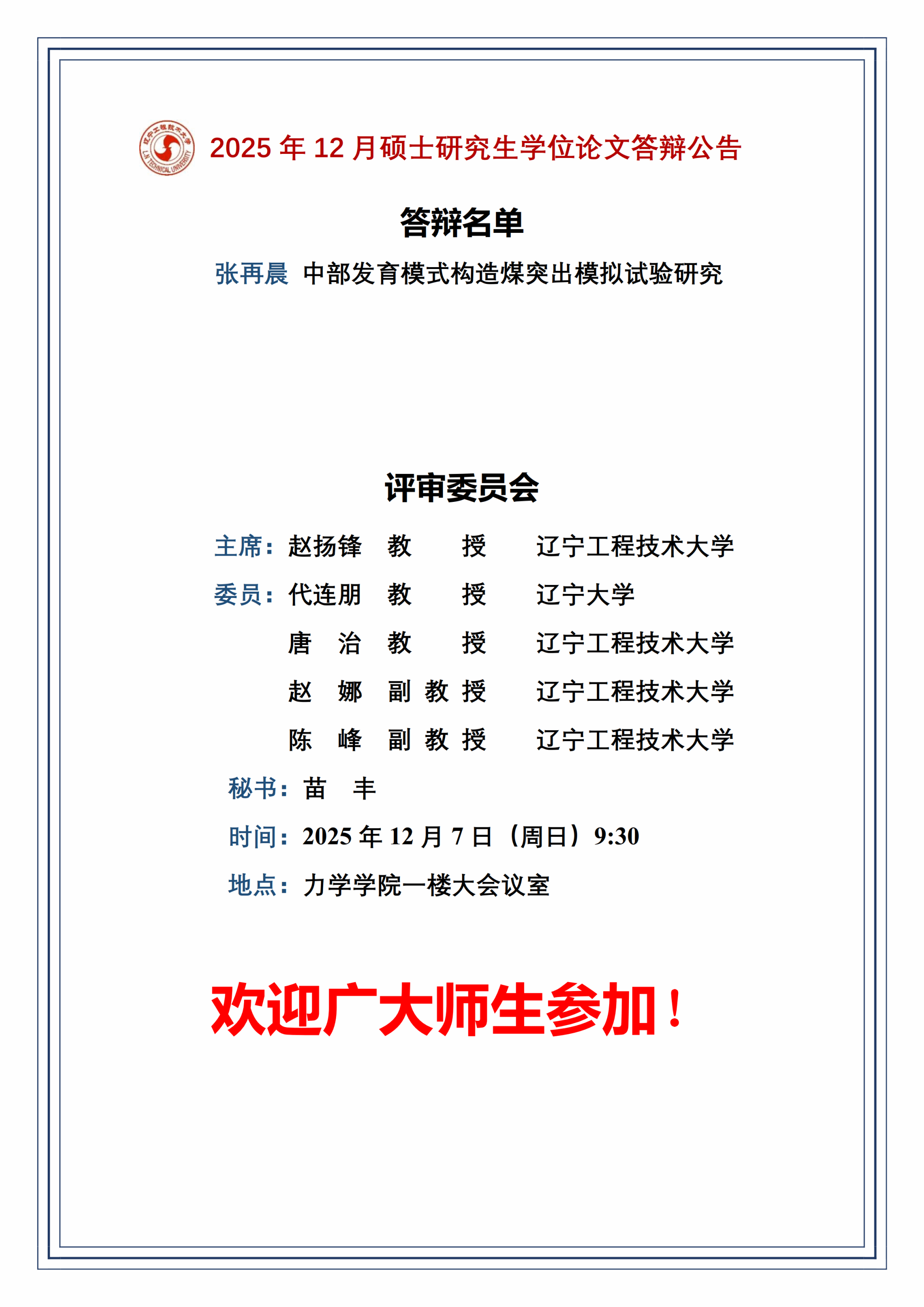2025年12月硕士研究生学位论文答辩公告(3组)