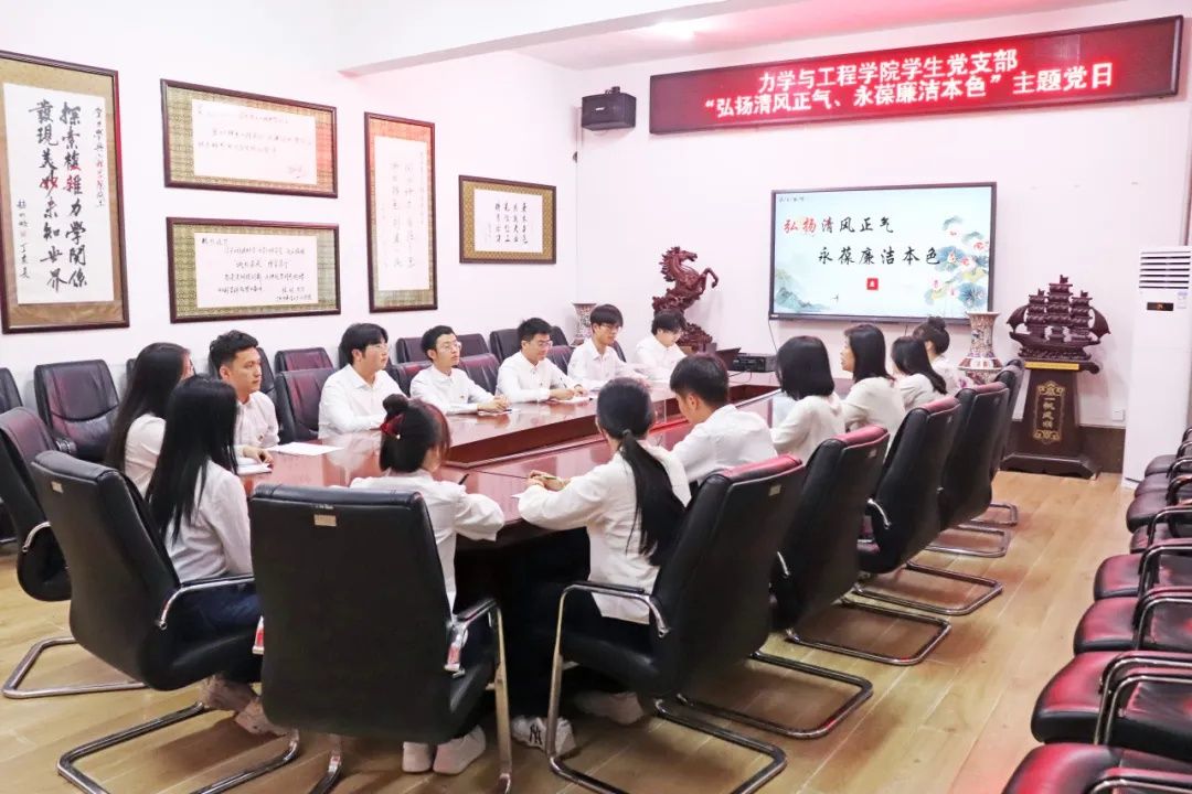 为深入贯彻落实新时代高校廉洁文化建设要求,切实筑牢青年党员思想防线,将廉洁意识融入日常行为准则。10月29日,力学与工程学院学生党支部开展“弘扬清风正气 永葆廉洁本色”主题党日活动,深化学生党员对廉洁文化的认知。党委副书记兼副院长王丽宏、学生党支部书记解书华与全体学生党员共同参会。