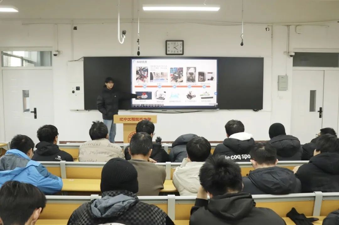 会上,张雅璐系统梳理了学科相关竞赛体系,从赛事分类、信息获取到能力准备进行了全面介绍,并建议同学们根据专业特点和个人志趣进行针对性选择;尚子阳则以自身科研实践为主线,讲述了从入门到专精的成长轨迹,强调科研经历对个人学术发展的价值以及长远意义。两位同学分别指出保持学习动力、敢于突破舒适区是取得进步的关键。现场学生听后深受启发,对科研创新有了更具体的认识,参与意愿显著提升。