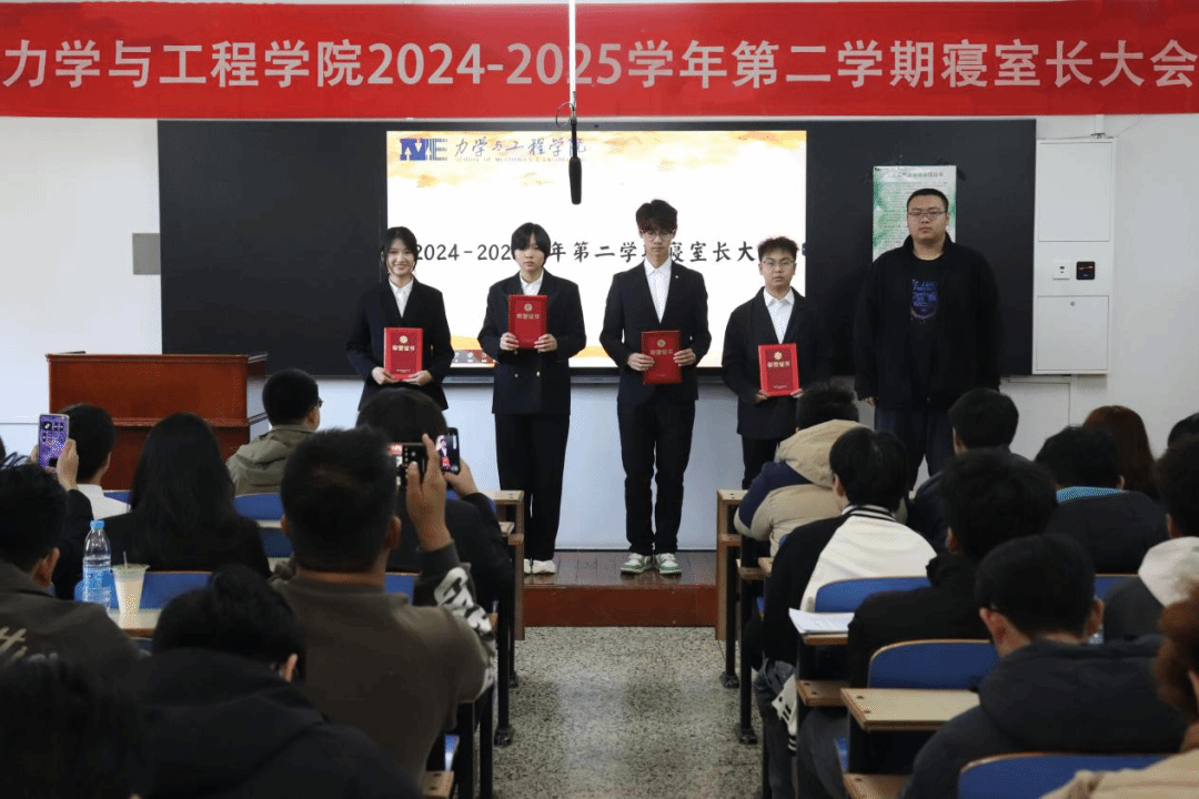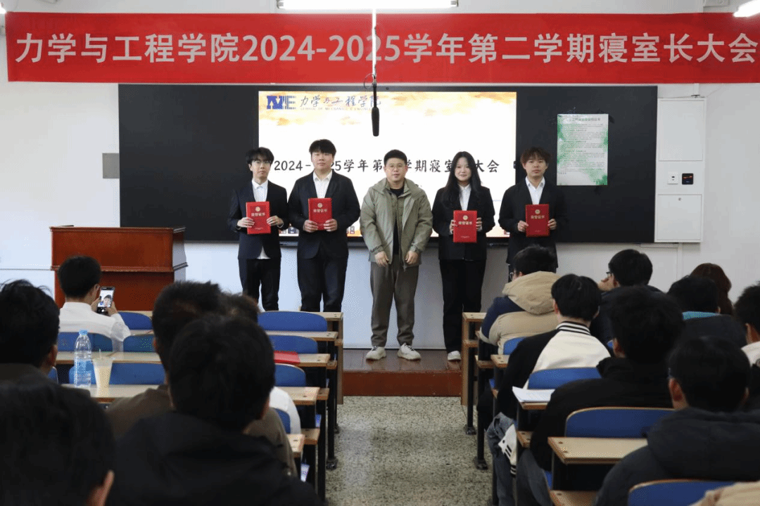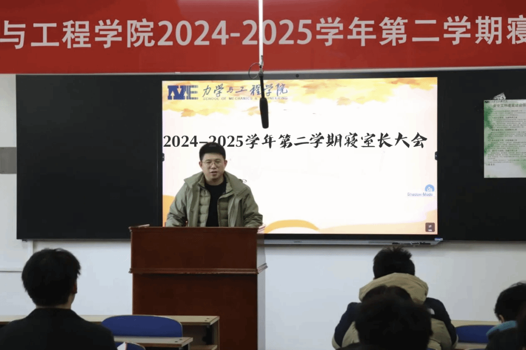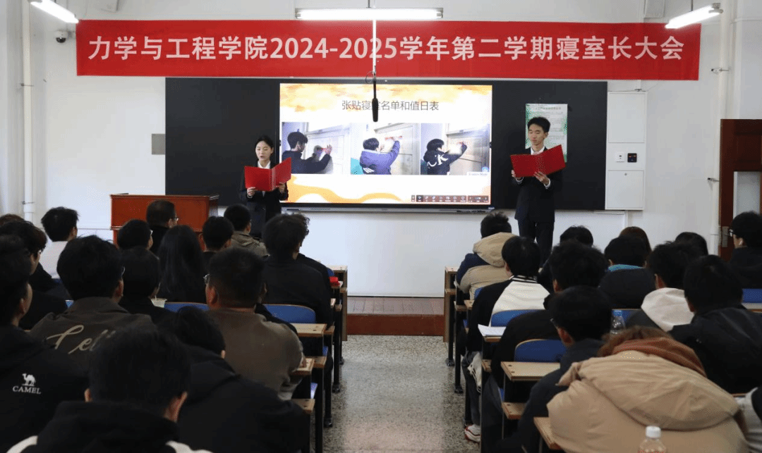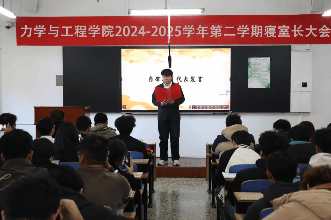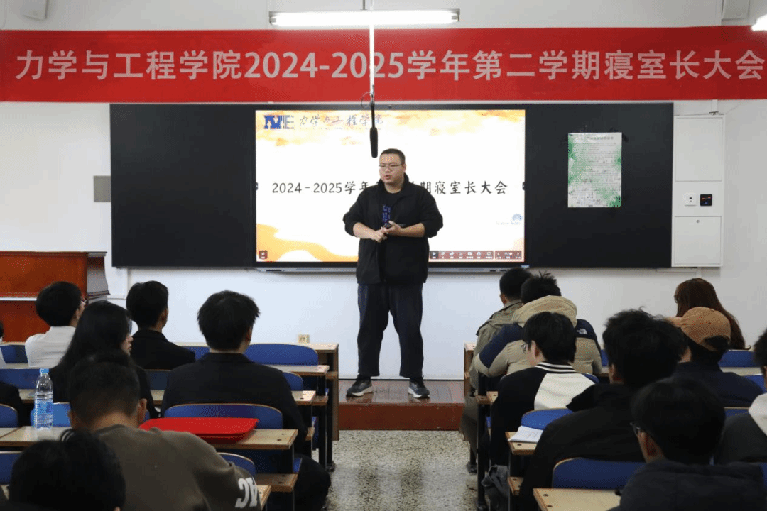 为深化学生社区管理,推进“一站式”学生社区建设,共建宜居宜学的寝室环境和良好氛围,力学与工程学院于11月2日在博雅楼203召开2024-2025学年第二学期寝室长大会暨安全文明寝室建设工作推进会。学院学工部主任王瑞斌、各班班长、寝室长、学院自委会成员、发展团员以及党员代表等学生骨干共计120余人参加本次活动。