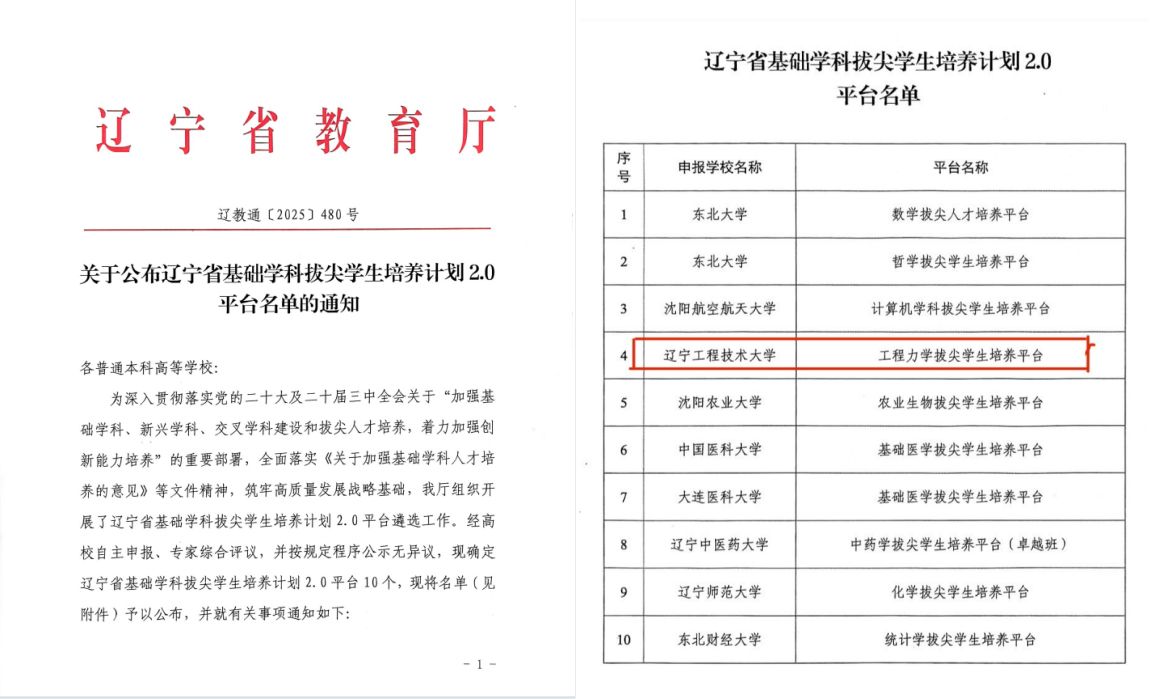 ★ “工程力学拔尖学生培养平台”成功入选辽宁省基础学科拔尖学生培养计划2.0平台,专业核心竞争力稳步增强。
